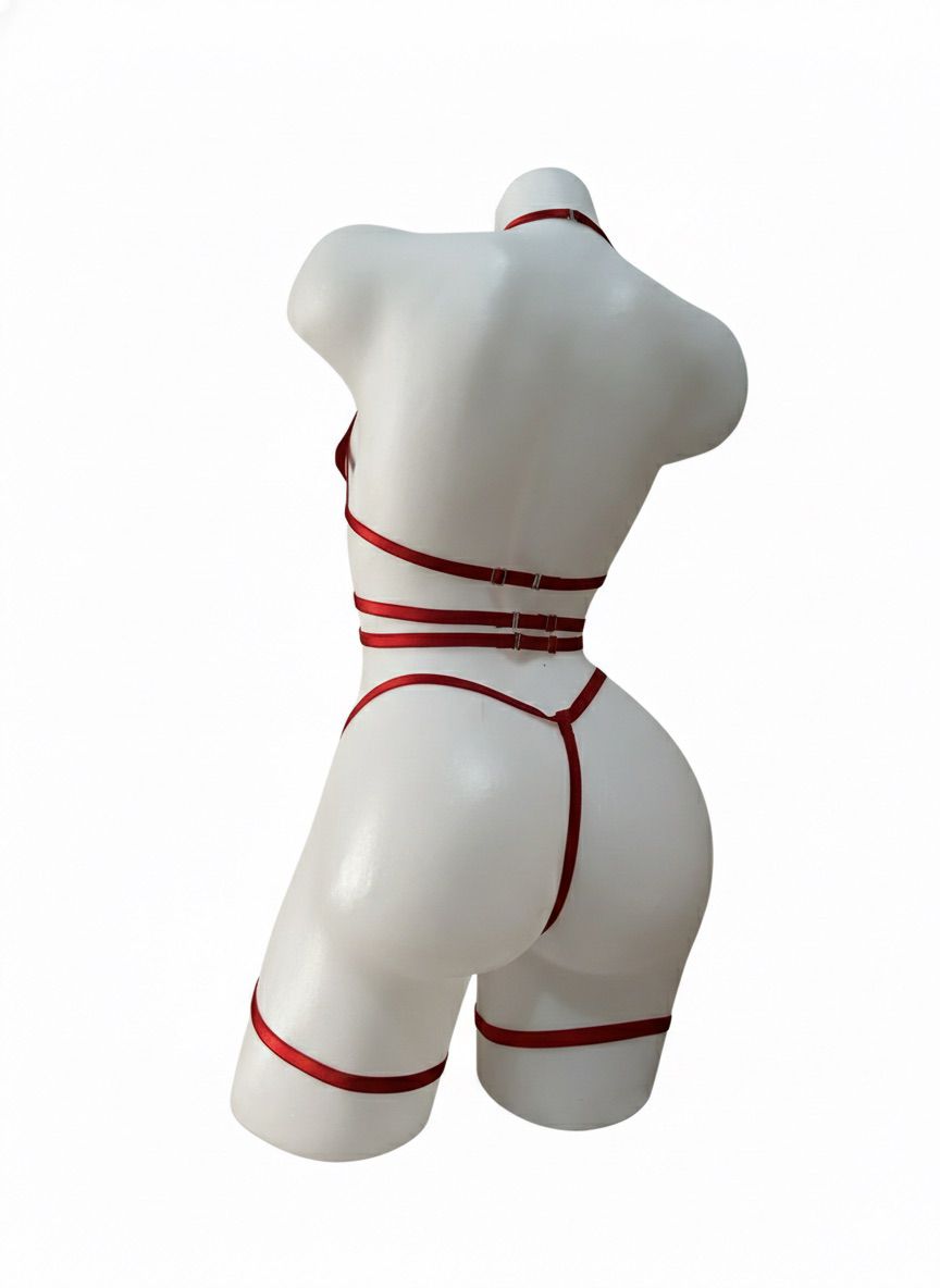KIRMIZI KURDELE POLYESTER SLİP SÜTYEN TAKIM